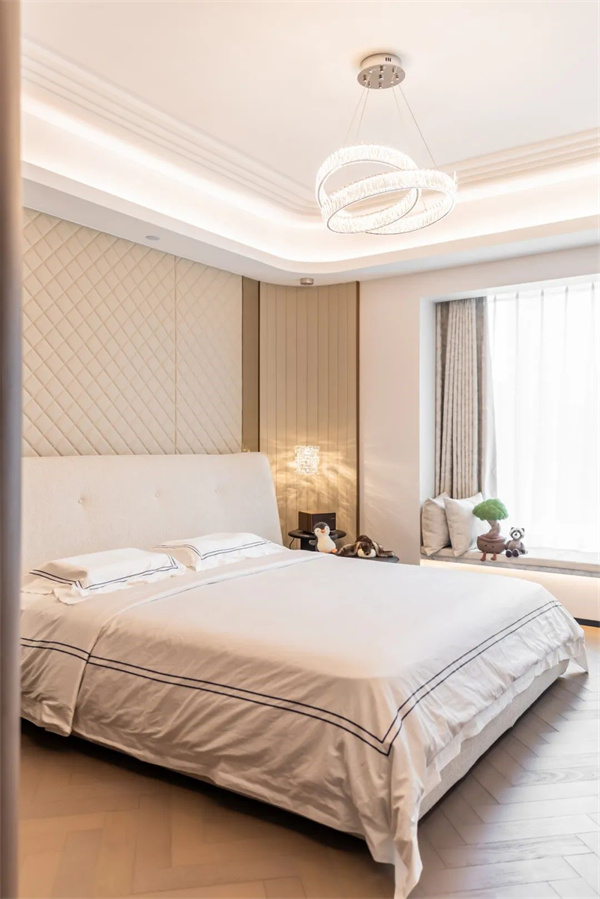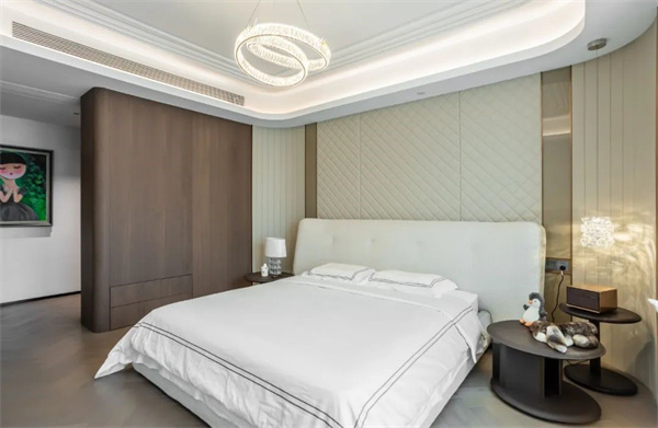 臥室的設(shè)計(jì)上用了簡約的線條為核心元素,意式輕奢風(fēng)在講述真正的永恒經(jīng)典,柔軟的床和精致的床頭裝飾營造出豪華的感覺,搭配絲綢質(zhì)地的床品和柔和的色彩,營造出溫馨而舒適的睡眠環(huán)境。