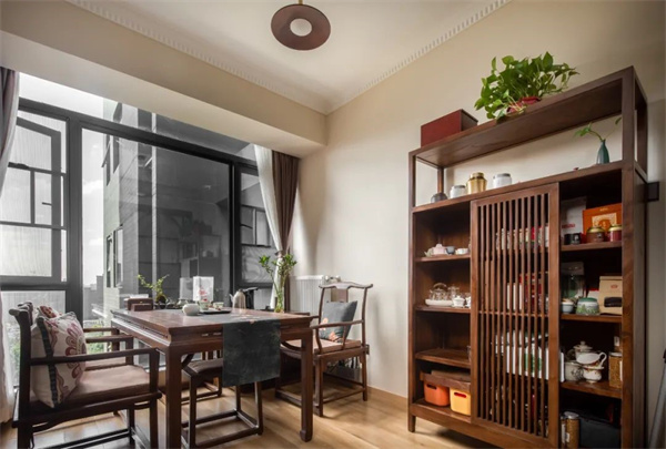 書房采用多功能設(shè)計(jì),一半休閑會(huì)客,一半工作閱讀;不僅功能豐富,而且格局規(guī)整方正,每一個(gè)細(xì)節(jié)、角落都有著自己的秩序感。